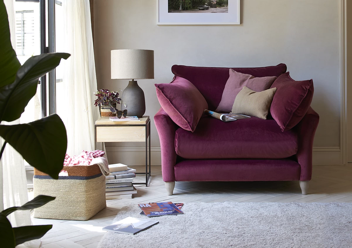 We’ve invented our Loafy version of flat-pack: squish-pack. Specially designed to fit through tricky spaces. A clever, good-looking and cuddly armchair in one.