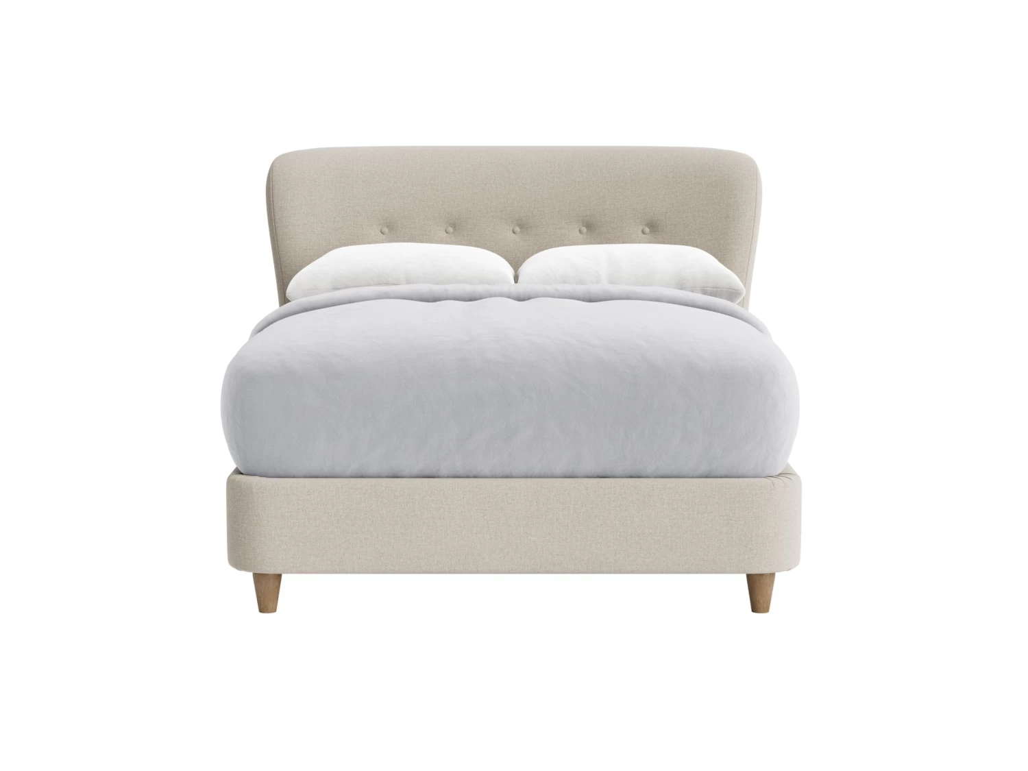 We designed this bed with 1950s Berlin in mind. Its curved headboard and solid oak legs make it a retro dream come true.