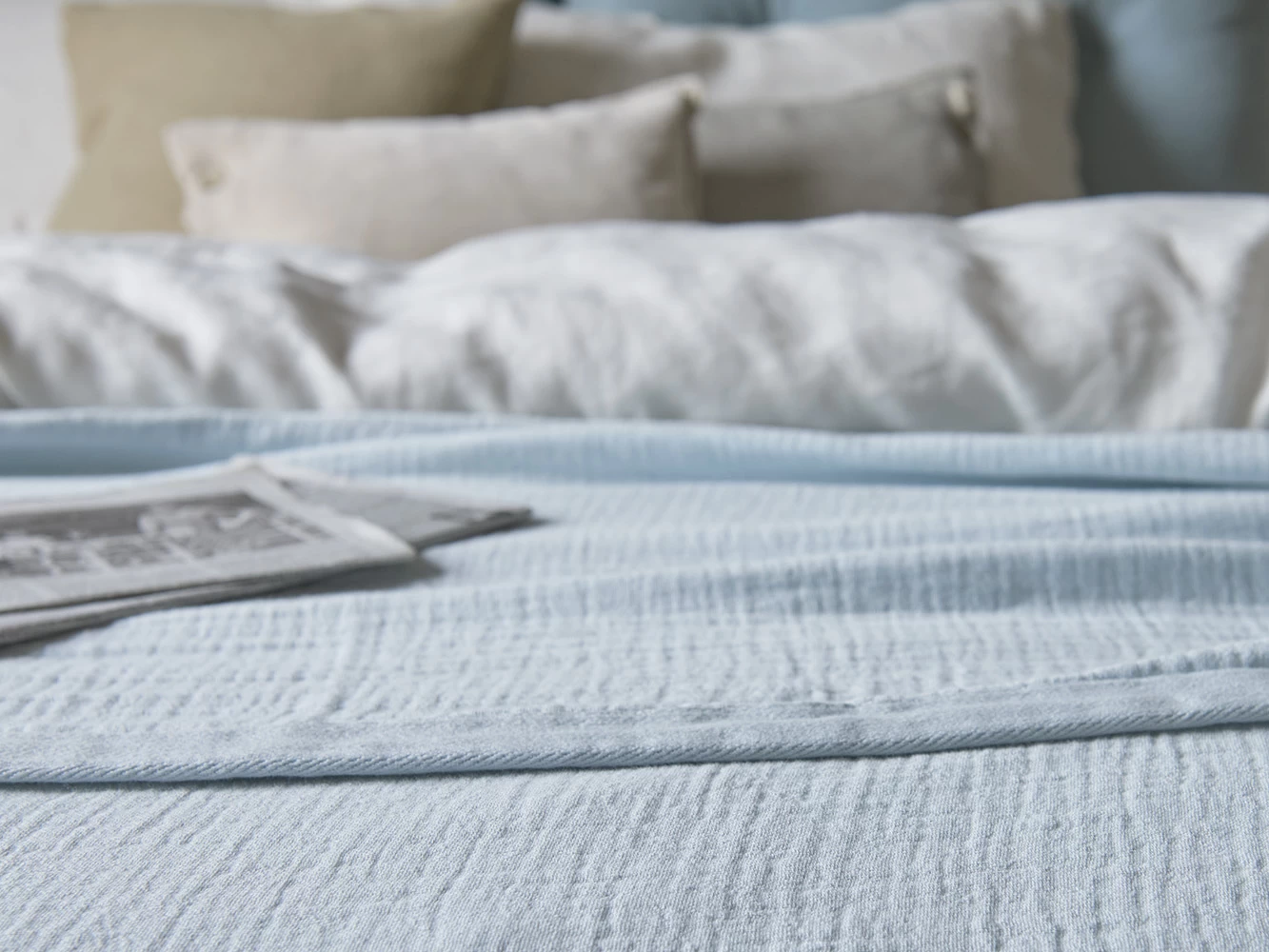 The lovely loose finish on this piece-dyed throw goes with the flow for that elegantly relaxed vibe. It’s also good to sleep under on hot summer nights.
