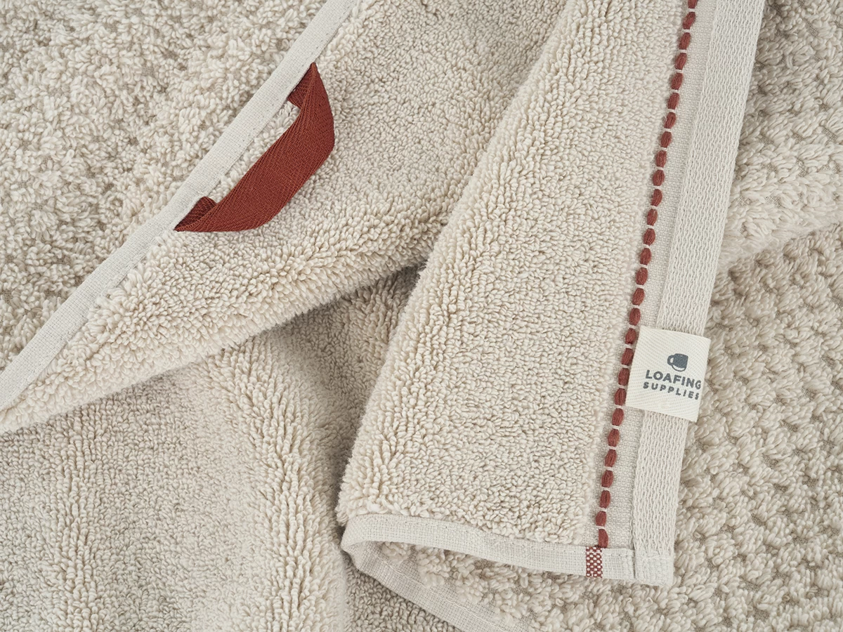 We designed these super plush, soft cotton towels for our own homes. Their slubby texture and colourful trims add a nice bit of Loafy character.