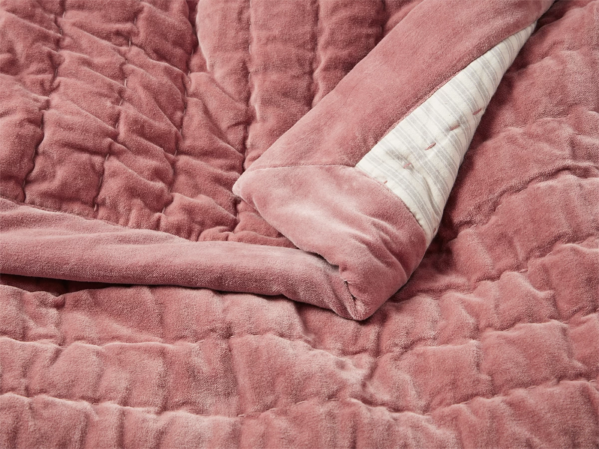 If ever there was a Loafy quilt, this is it. We’ve used a kantha stitch on a lovely dusty velvet. And then backed it with a neutral ticking to give it that relaxed, had it ages feel.