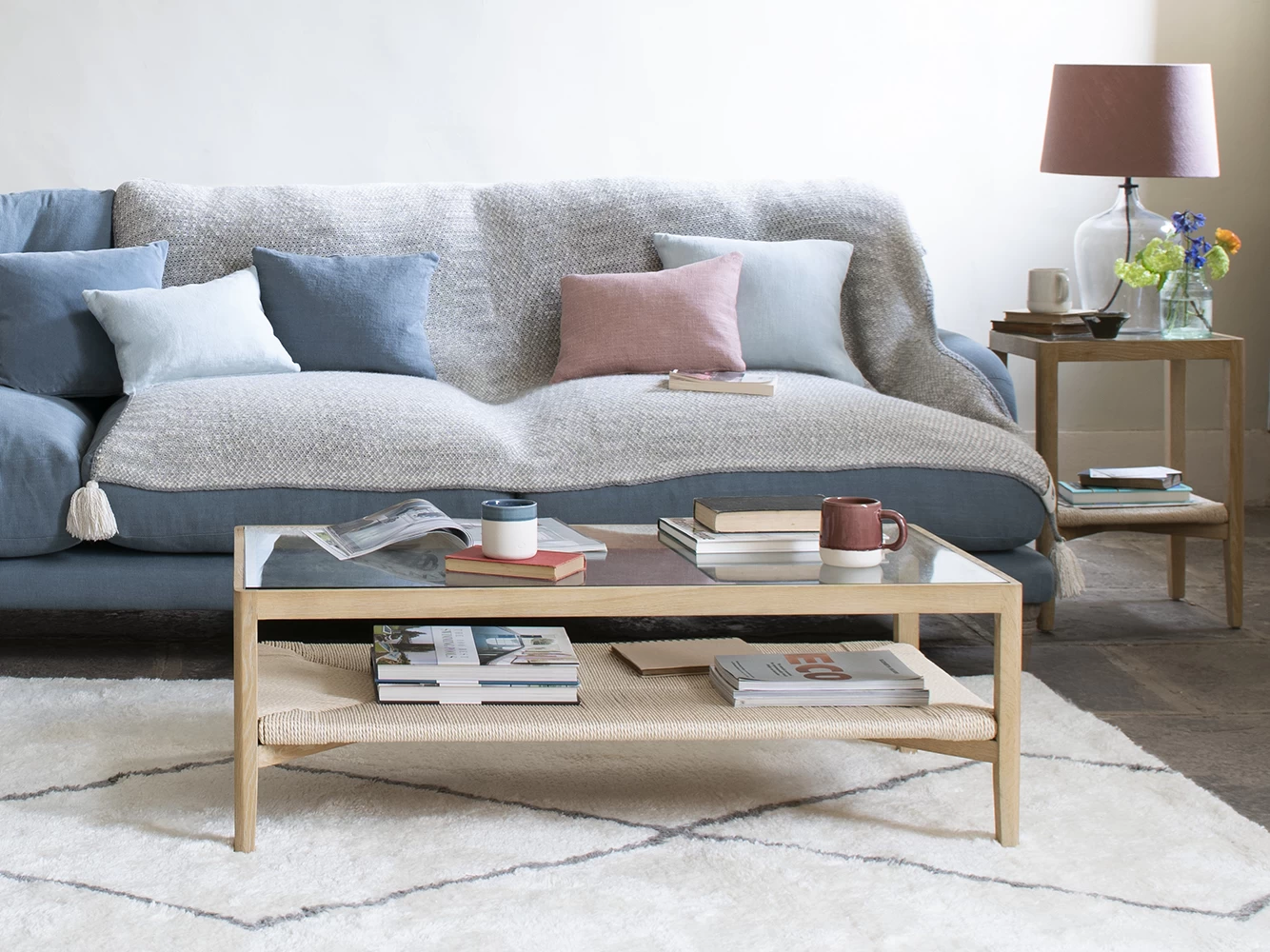 This laid-back knitted throw has texture and a nice bit of character. Chuck it on a sofa or toss it on a bed to crank up the cosy.