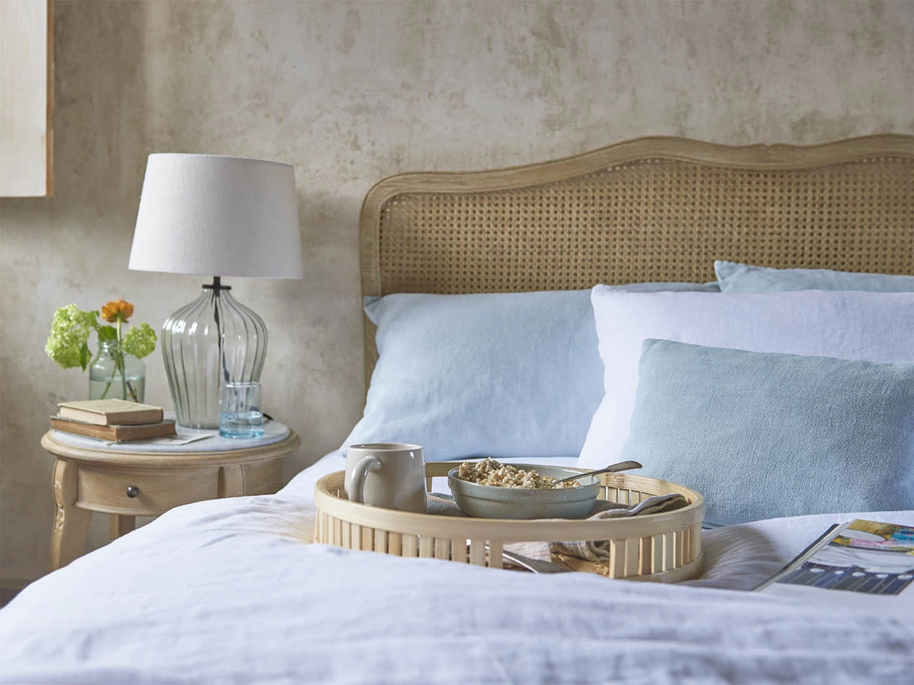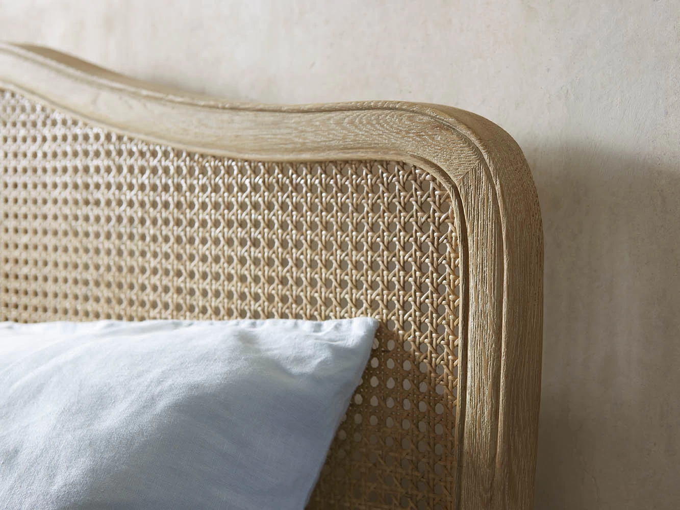 As French as they come, we’ve given this solid oak sleeping beauty a light finish and kitted it out with super-practical rattan.