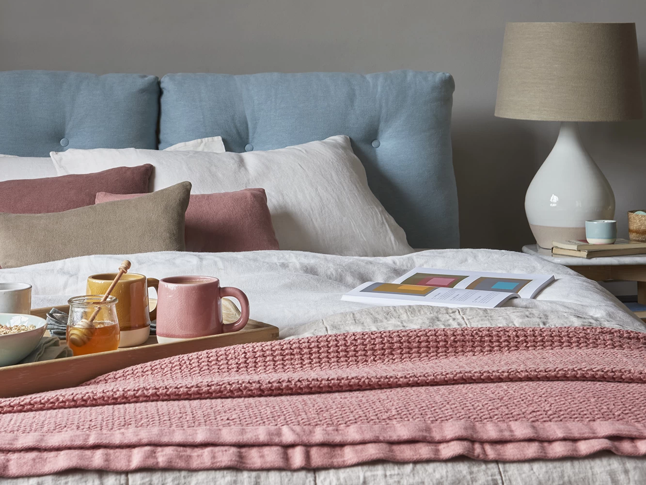 Scandi in all the right places with a solid oak frame. And a big dose of squish for bedtime reading.