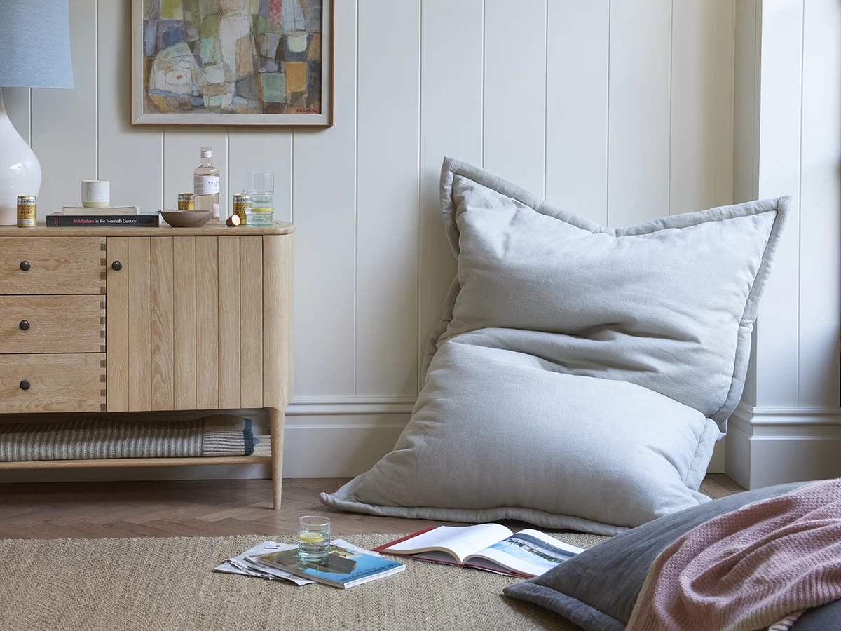 This is no run-of-the-mill beanbag. We’ve padded the gorgeous linen cover to give it extra squish. Sink in.