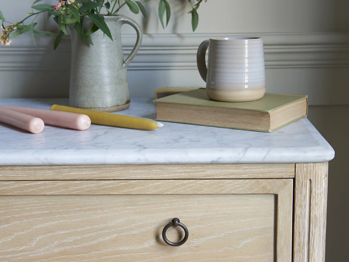 A marble-topped design that really floats our boat. Made the old-school way from top-notch oak.
