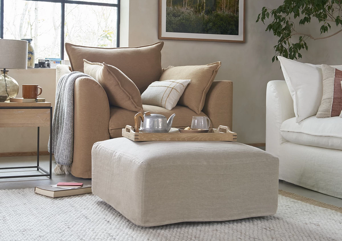 Hang loose with this laid-back footstool. Made with handy removable covers so you can switch things up – or clean them up.