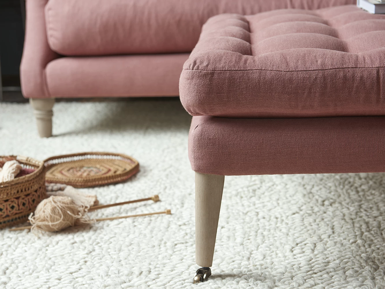 A big softie that’s strong enough to hold a tea tray, but soft enough to let you put your feet up.