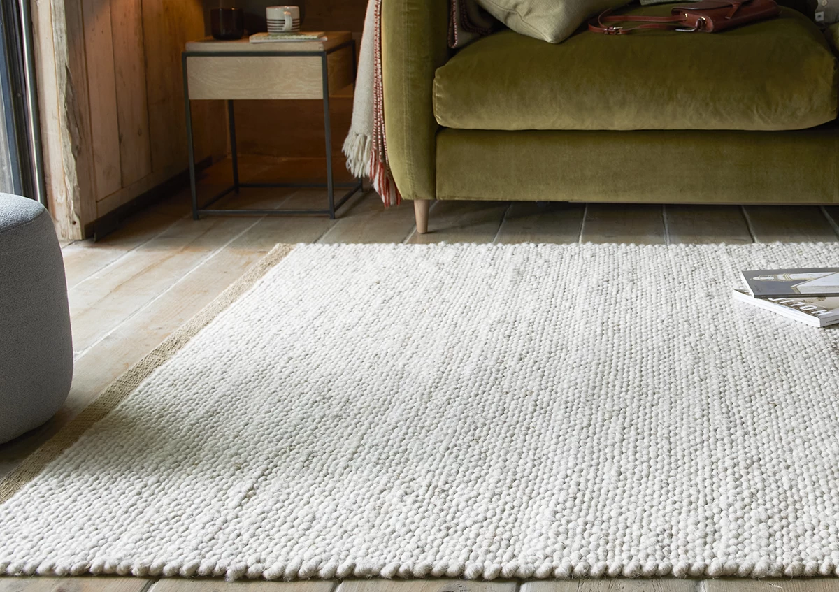 Rugged yet soft. Hand woven with wool and jute for a laid-back look with a hard-wearing texture.